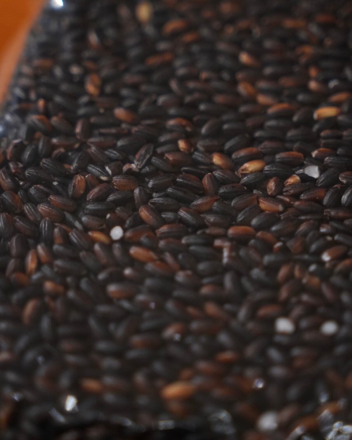 2.最後に水ですすぐときに、一定量*の古代米を加え軽く水洗いしてください。